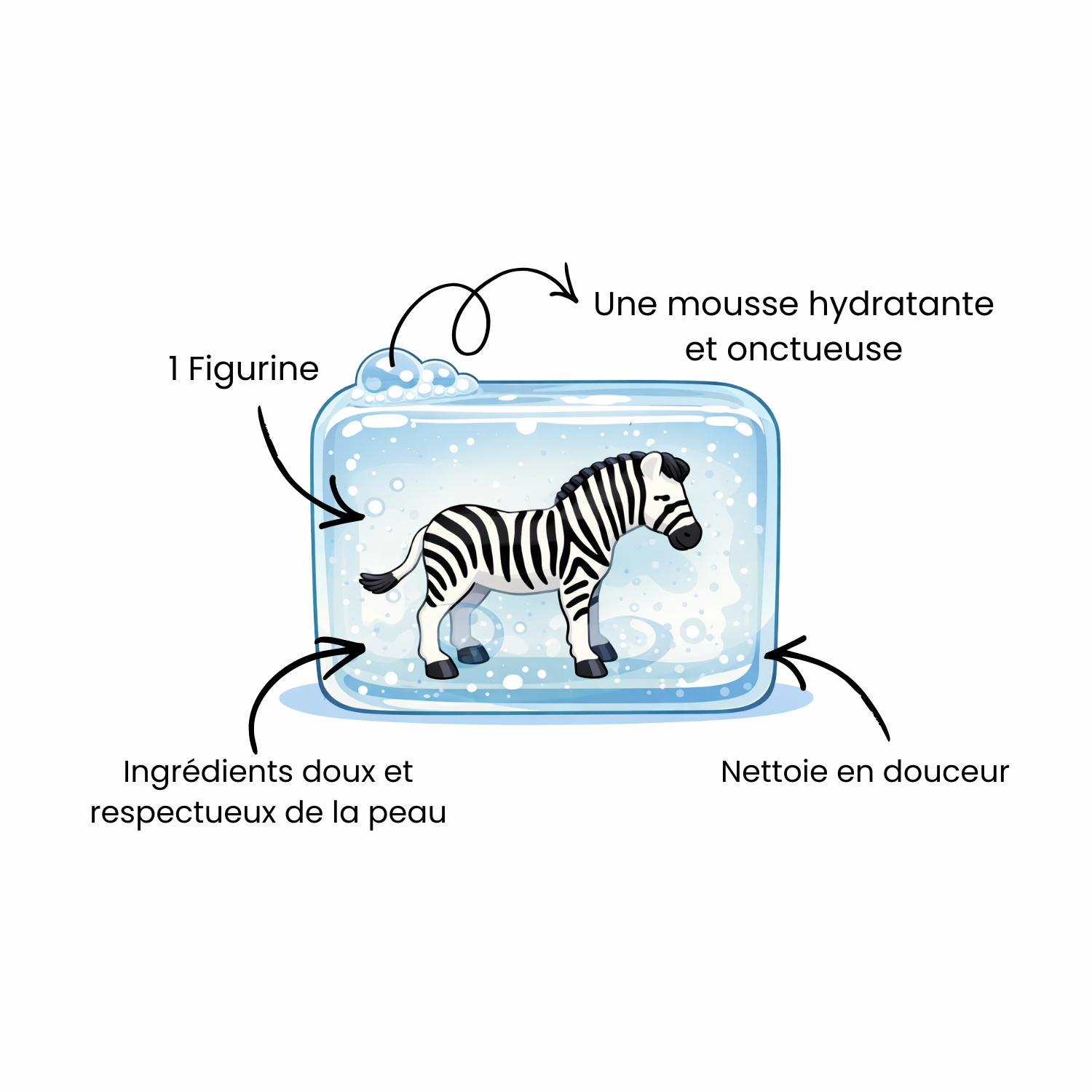 Un savon doux, une figurine, pour donner envie aux enfants d’être propres.